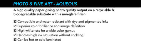 Solaris Media by LiqueColor brings you the ultimate combination of media to use with your Solaris Ink. Tested and formulated for the utmost in color, performance, and user satisfaction, Solaris’s premium line of media is 600% ink load capable and give the user the best fade resistance and water resistance of any media on the market. With most other “run of the mill” media’s being only 320% ink load capable, users will appreciate the ease of use of Solaris Media.